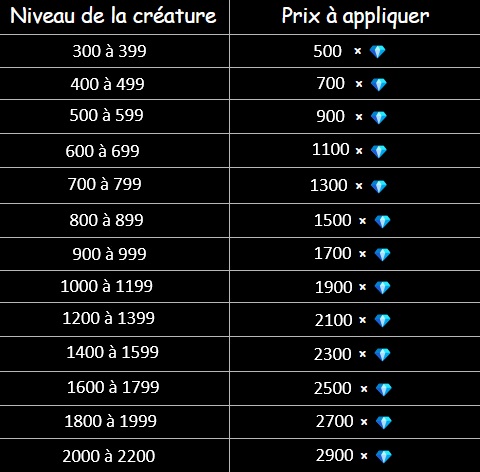 🔸 Il est interdit d'offrir ou d'échanger une créature ayant dépassé le niveau 300, ou bien possédant une ou plusieurs stats au-delà de 80.